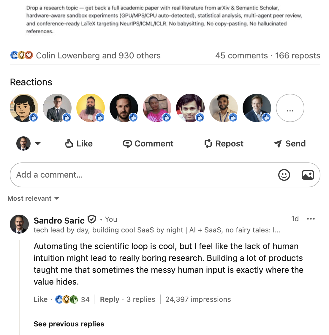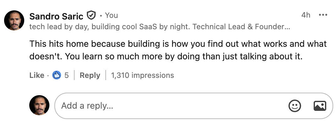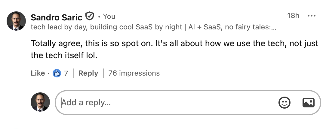 Most AI comments get caught because they all sound the same. Same opener. Same structure. Same perfect grammar. LinkedIn's algorithm notices. People notice. You look like a bot. You lose trust.